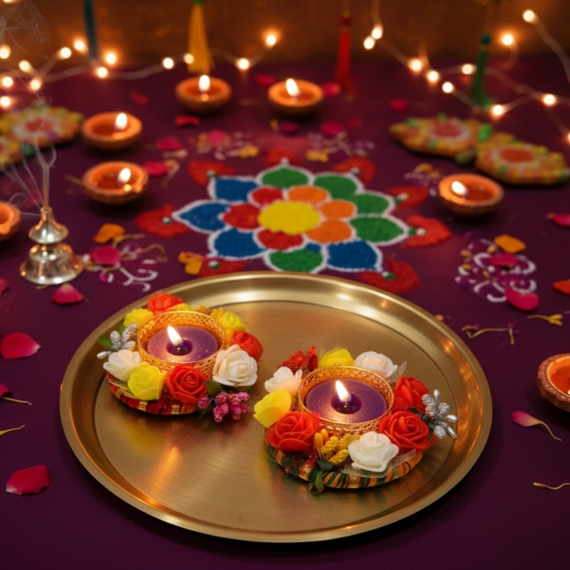 These versatile decor pieces are perfect for creating a stunning centerpiece for your rangoli, decorating your pooja thali, lining your entryway, or simply adding a festive touch to a side table. They also make wonderful and affordable return gifts for Haldi, Mehendi, or Diwali parties.